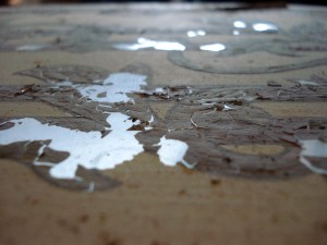 La documentación sobre este tipo de pintura es muy escasa y sobre su restauración es inexistente, por lo que no existían referentes. Después de un estudio exhaustivo y de diversas pruebas, se procedió a consolidar la pintura y , posteriormente a la limpieza de los fragmentos que lo permitían. La consolidación fue una de las intervenciones más dificultosas ya que al no tener poro el soporte, dificultaba la penetración del consolidante. Finalmente, y después de varias pruebas, se optó por utlizar una resina acrílica de bajo peso molecular en alta concentración porque fué el que dio mejor resultado. Se escogió disolver la resina en una solución de la familia de los hidrocarburos aromáticos de lenta evaporación, que a medida que se evaporaba la pintura se volvía más flexible y era posible recolocar los fragmentos mecánicamente. La limpieza, previa realización de catas, se realizó con agua desionizada caliente.